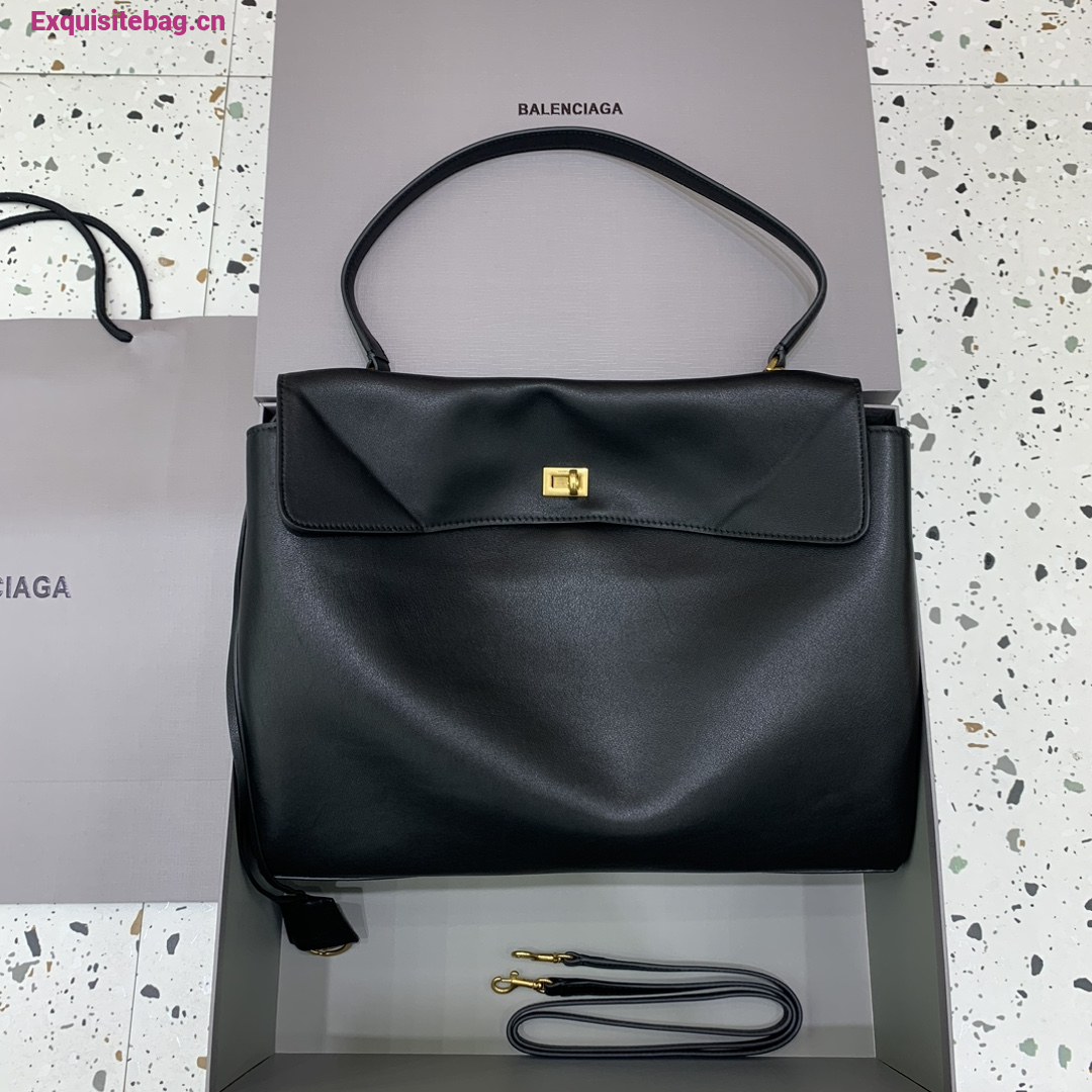 Balenciaga Rodeo Medium Leather Shoulder Bag Black