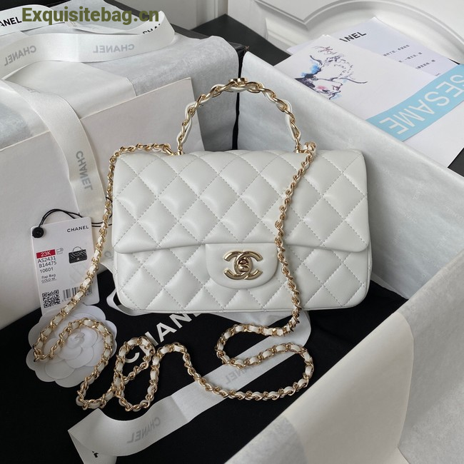 Chanel 24A mini flap bag with top handle AS2431 WHITE