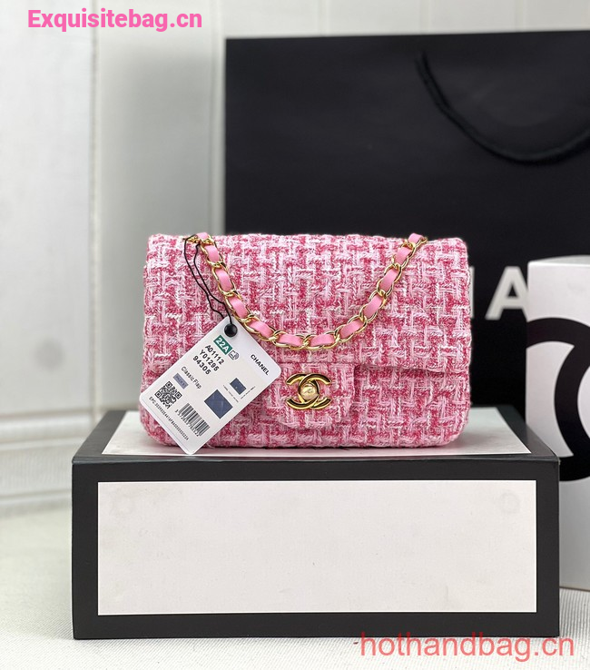 Chanel CLASSIC HANDBAG Wool Tweed A1116 pink