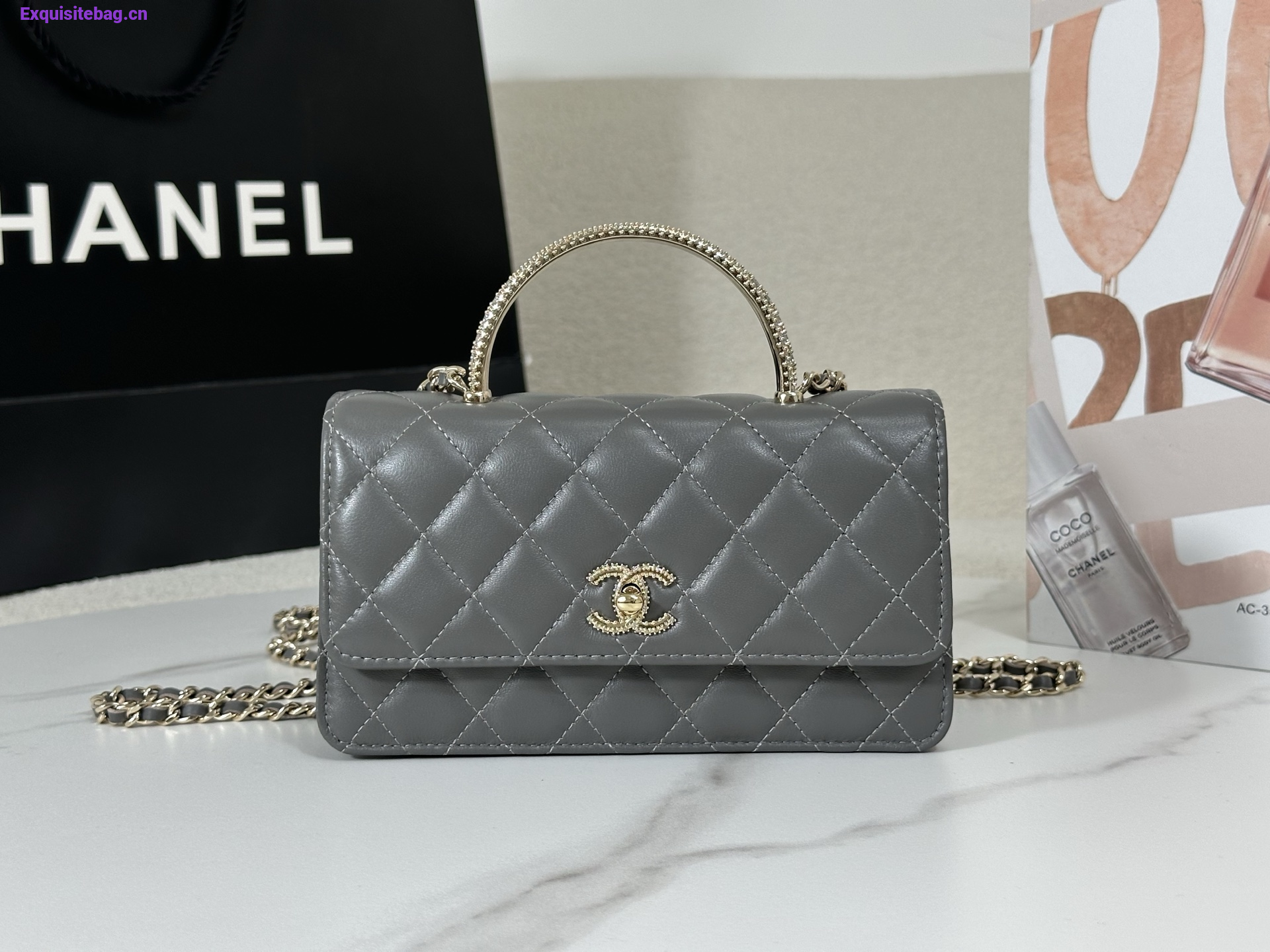 Chanel Lambskin Quilted Pick Me Up Wallet On Chain WOC Grey