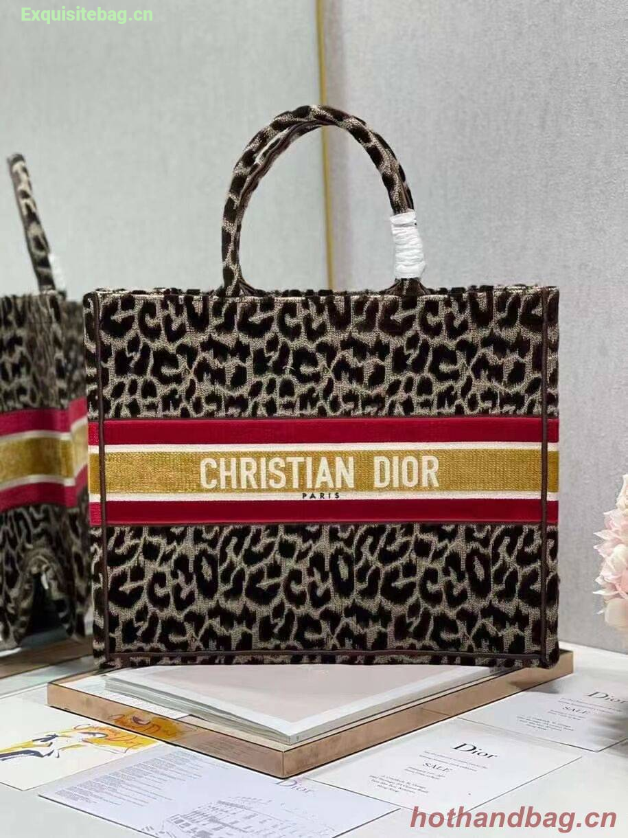 DIOR BOOK TOTE Embroidery C1286 1 Brown Leopard Print