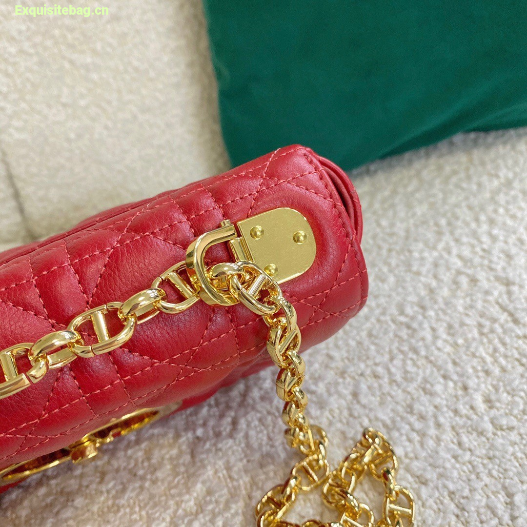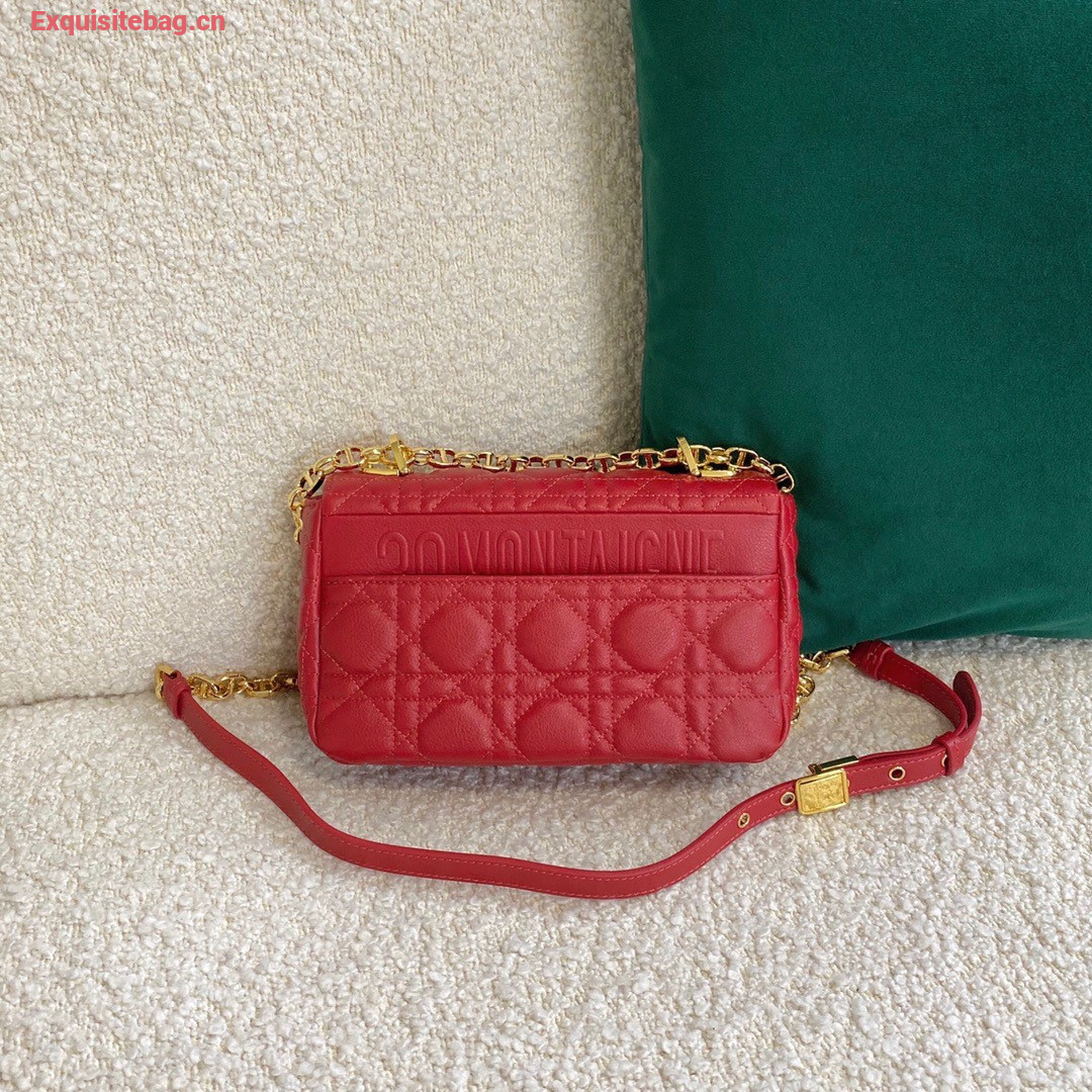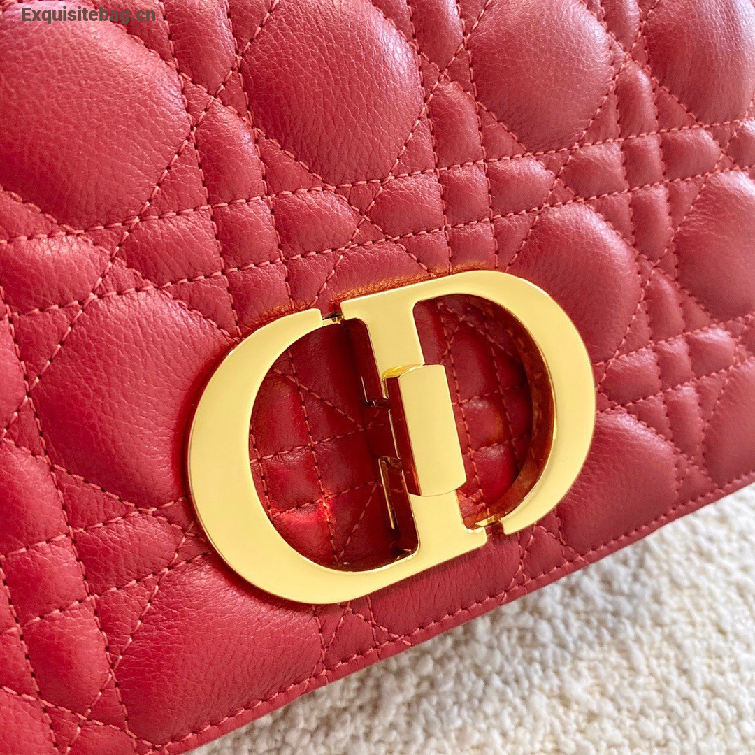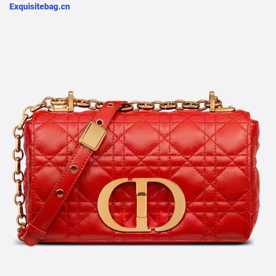 Dior Caro Small Bag In Red Cannage Calfskin