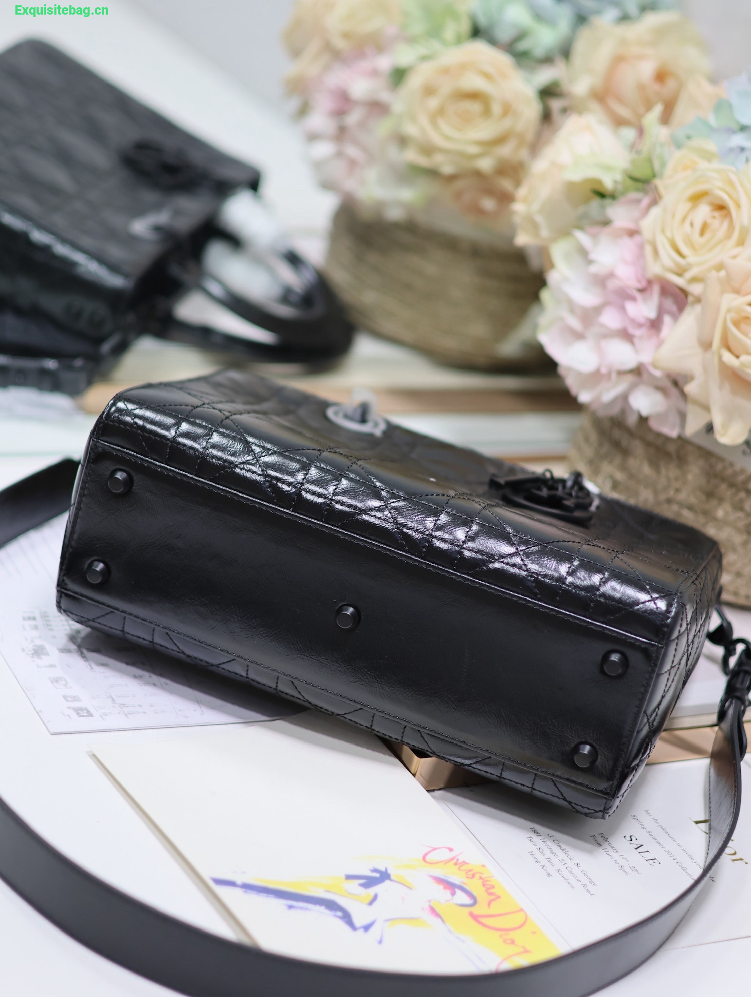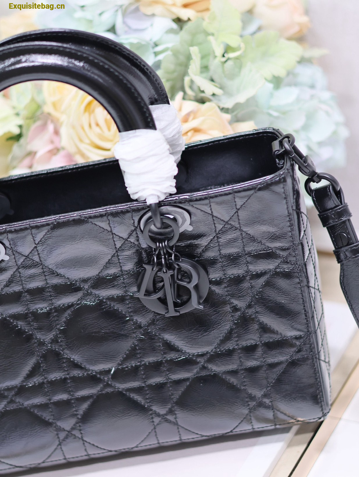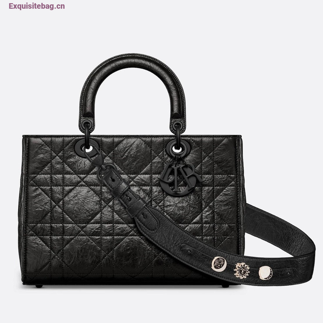 Dior Medium Lady D Sire My ABCDior Bag in Black Crinkled Calfskin