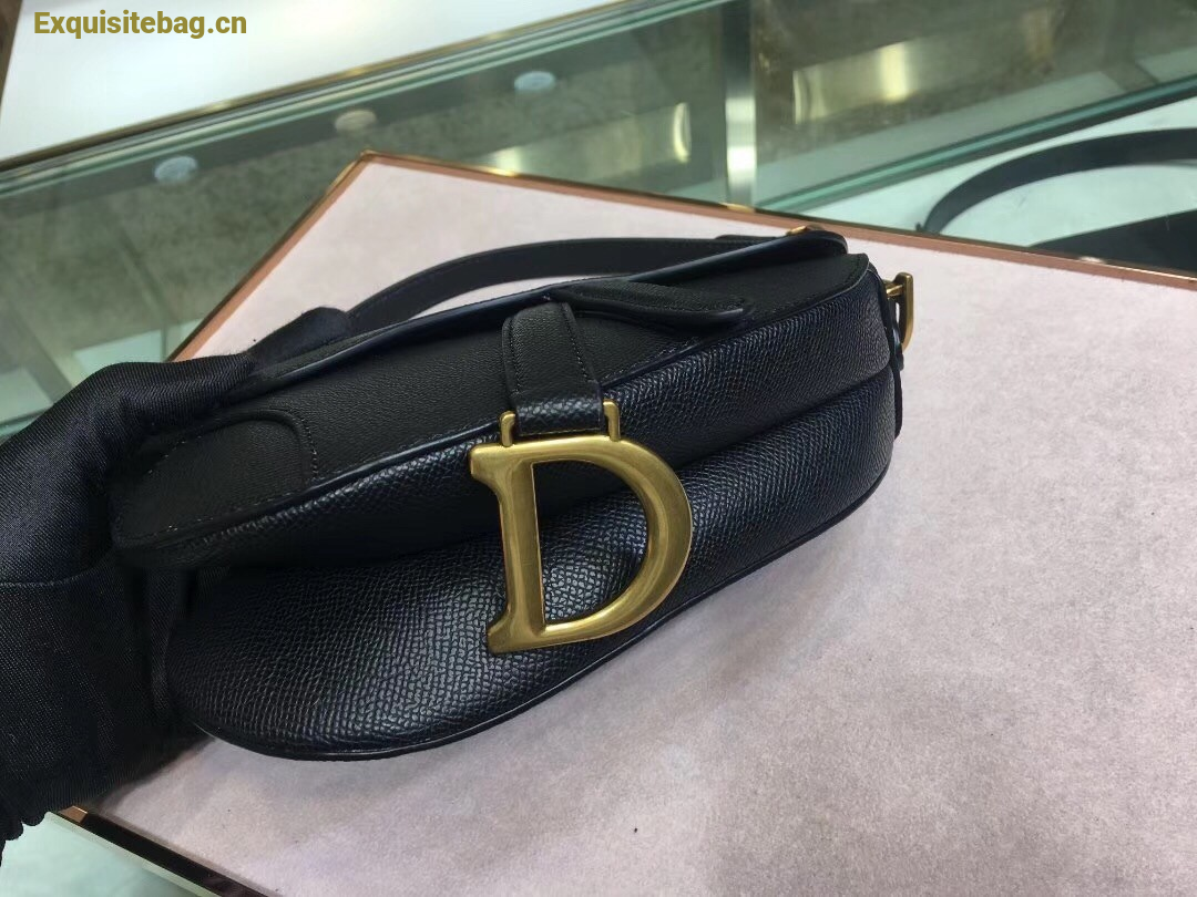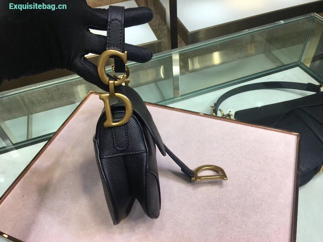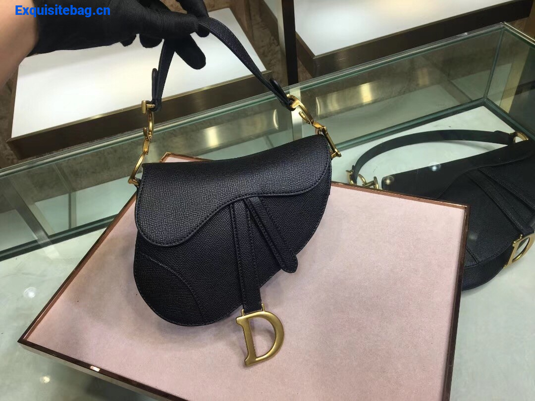 Dior Mini Saddle Bag In Black Grained Calfskin