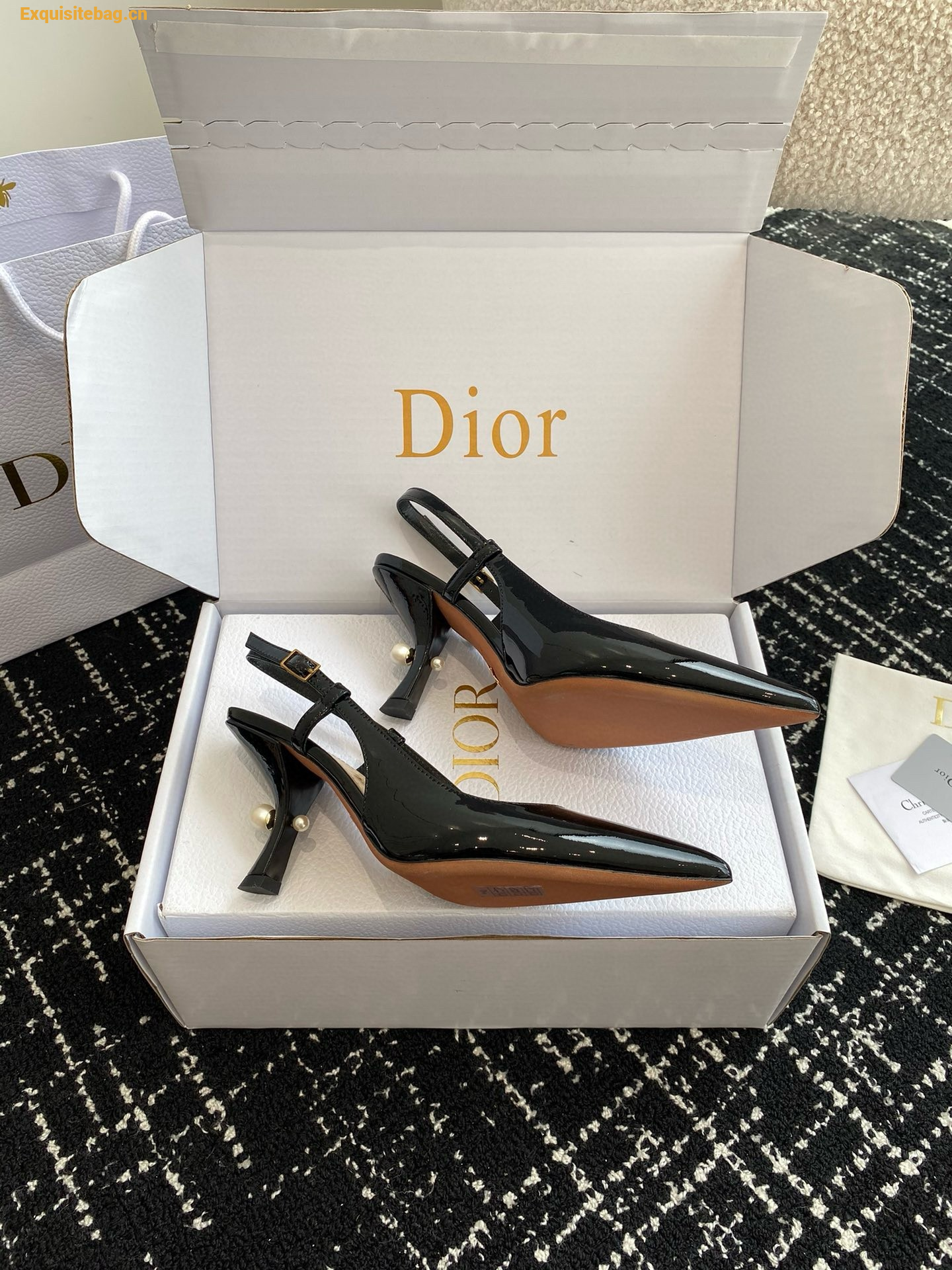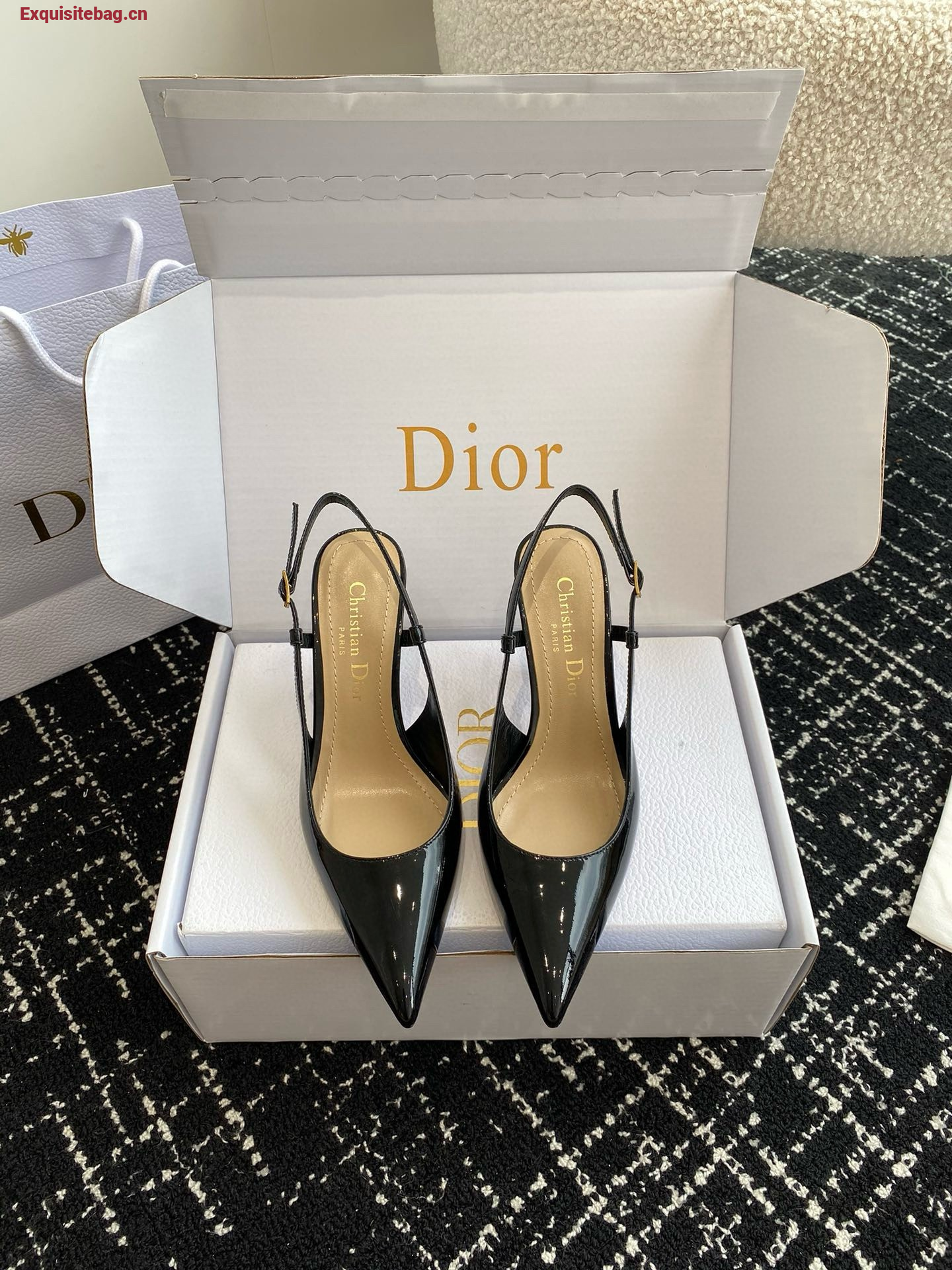Dior Tribales Pumps Slingback 80mm in Black Patent Calfskin