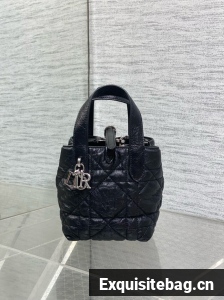 Dior Toujours Vertical Nano Tote Bag Macrocannage Calfskin S6100 black & Silver