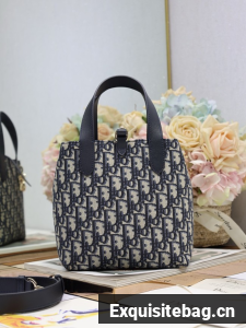 Small Dior Toujours Vertical Tote Bag Macrocannage Oblique Jacquard M2835P blue