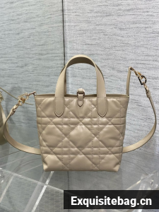 Small Dior Toujours Vertical Tote Bag Macrocannage Crinkled Calfskin M2835 beige