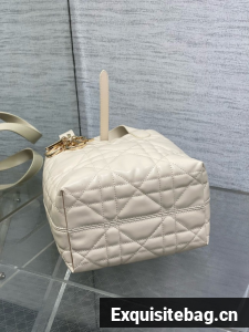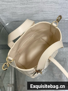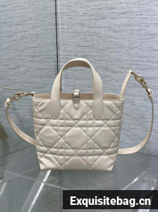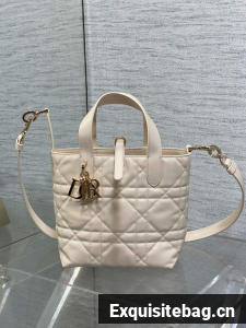 Small Dior Toujours Vertical Tote Bag Macrocannage Crinkled Calfskin M2835 Cream