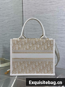:: Small Dior Book Tote Dior Oblique Embroidery and Calfskin M1325CZ-2