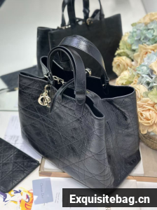Large Dior Toujours Bag Original Calfskin Leather Bag M2820SN Black