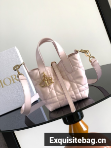 :: Small Dior Toujours Vertical Tote Bag M2835OSNW Powder Pink Macrocannage Calfskin