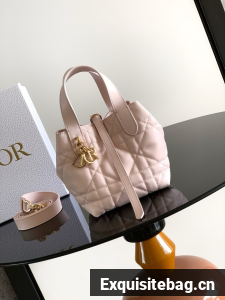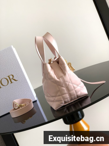 Small Dior Toujours Vertical Tote Bag M2835OSNW Powder Pink Macrocannage Calfskin