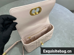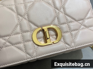 Small Soft Dior Caro Bag Macrocannage Lambskin M9252UHPA Powder Pink