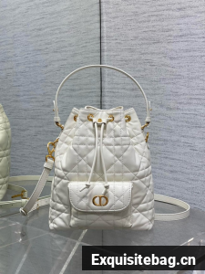 :: Small Dior Caro Bucket Bag Macrocannage Lambskin M3372 Latte