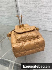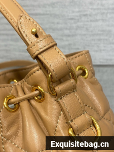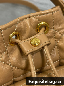 :: Dior Caro Nano Bucket Bag Macrocannage Lambskin S5250 Light Gold-Tone