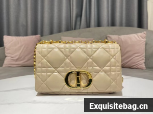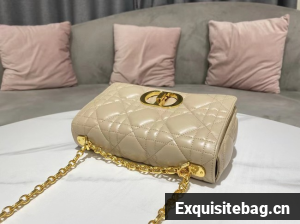 :: Dior Medium Soft Dior Caro Bag Macrocannage Lambskin M9253UHPA Beige