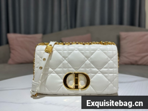 :: Dior Medium Soft Dior Caro Bag Macrocannage Lambskin M9253UHPA Latte