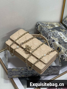Lambskin and technical fabric liningFront D.I.O.R. charmsFlap closureTwo interior compartmentsRear slip pocketThree card slotsLeather top handleRemovable jewel chainMade in ItalyDimensions: 21 x 11.5 x 4.5 cm / 8.5 x 4.5 x 2 inches (Length x Height x Width)The size is suitable for a phone, a card holder and lipstickChain length: 110 cm / 43.5 inchesChain drop length: 51 cm / 20 inchesWeight: 400 g / 14 ouncesSize and weight details may vary depending on the product"s materialReplica Dior Comes with dust bag, authentication cards, and pamphlets.