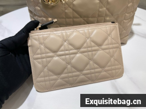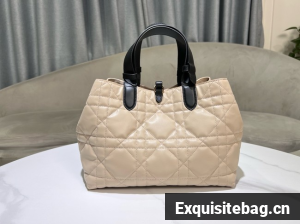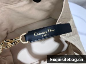 The Dior Toujours bag is distinguished by a casual and practical design. Crafted in rope beige calfskin with Macrocannage topstitching and black calfskin detailing, it showcases a spacious interior compartment with a matching pouch to organize the essentials. Its thin leather strap closure keeps items secure while the D of the CD Lock clasp twists to adjust the sides and enhance the bag"s silhouette. The leather top handles can be adjusted using the small notches so the medium bag can be carried by hand or worn over the shoulder.