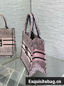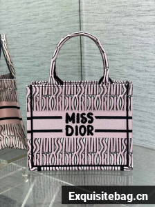 Small Dior Book Tote white and Pale Pink Miss Dior Allover Embroidery M1265Z