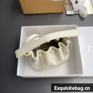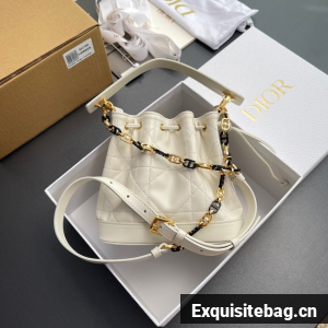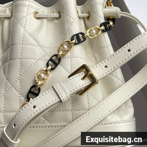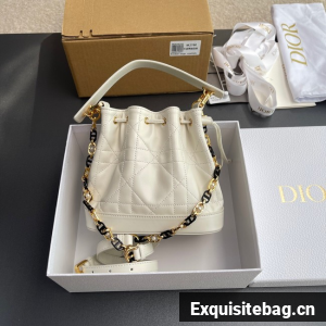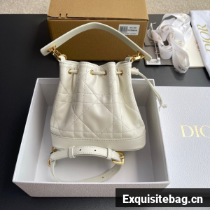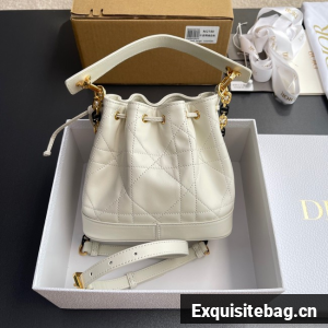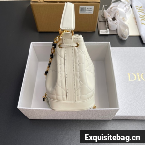 Small Dior Jolie Bucket Bag Latte Calfskin and Macrocannage Lambskin M2780UN