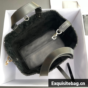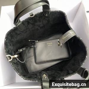 The Dior Toujours bag is distinguished by a casual and practical design. Fully embroidered with black textured tweed, it is accented by a blend of threads displaying the Cannage motif. It showcases a spacious interior compartment with a matching pouch to organize the essentials, while a leather strap closure keeps items secure and the D of the CD Lock clasp twists to adjust the sides and enhance the bag"s silhouette. The leather handles can be adjusted using the small notches in order to be able to carry the large bag by hand or wear it over the shoulder.
