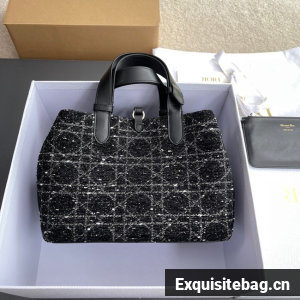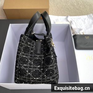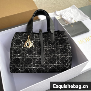 Medium Dior Toujours Bag Black Cannage Tweed M2821