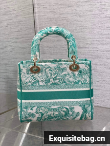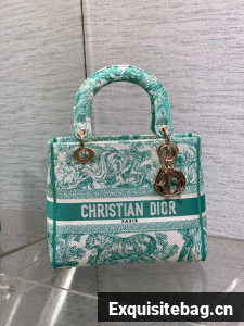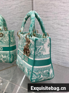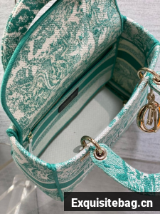 DIOR Medium Dioriviera Lady D-Lite Bag Aquamarina Toile de Jouy Embroidery M0565OT