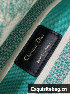 Part of the Dioriviera capsule, the Lady D-Lite bag combines classic elegance with House modernity. The style is fully embroidered with the Toile de Jouy motif in aquamarina. The front features a Christian Dior Paris signature while the thick pale gold-finish metal D.I.O.R. charms enhance and illuminate the silhouette. Equipped with a wide, reversible and removable embroidered shoulder strap, the medium Lady D-Lite bag can be carried by hand or worn crossbody.