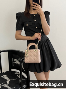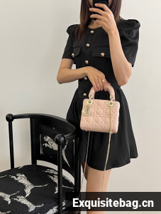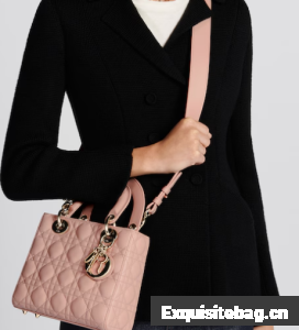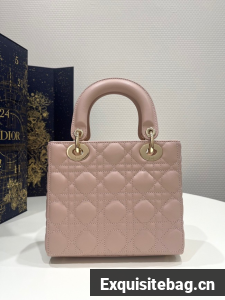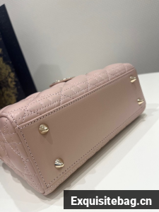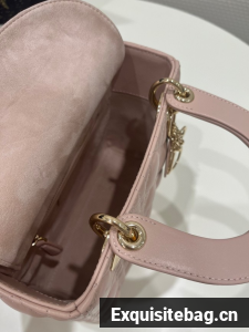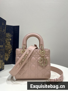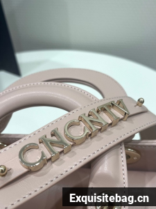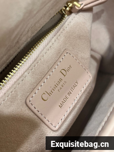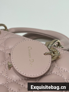 The Lady Dior My ABCDior bag epitomizes Dior"s vision of elegance and beauty. Sleek and refined, the timeless style is crafted in blush lambskin with Cannage stitching, creating the instantly recognizable quilted texture. Pale gold-finish metal D.I.O.R. charms further embellish its silhouette with an elegant touch. Featuring a shoulder strap that can be personalized with badges, the small, unique design may be carried by hand or worn crossbody.