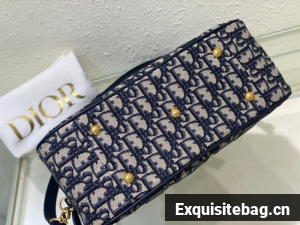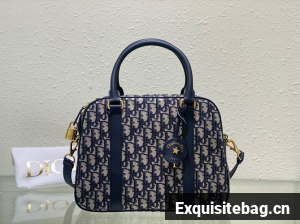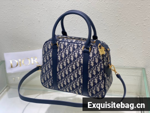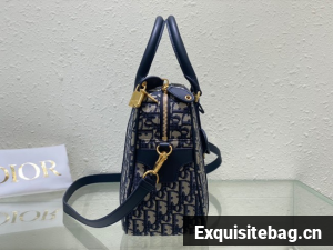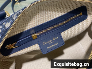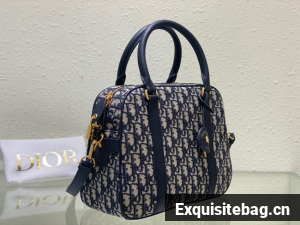Large D-Vibe Bowling Bag Blue Dior Oblique Jacquard M1341UT