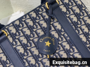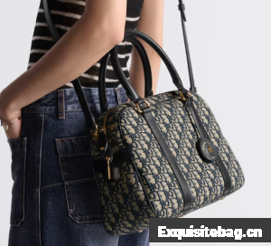 New for Fall 2024, the D-Vibe bowling bag has a streamlined and modern silhouette. Constructed in blue Dior Oblique jacquard adorned with tonal leather details, it stands out with a leather key holder engraved with the Christian Dior Paris signature and a gold-finish star. The attached key opens the zipper padlock to reveal a spacious compartment that can accommodate all the essentials, completed by a slip pocket and a zip pocket. Featuring leather top handles and an adjustable, removable strap, the practical large bag can be carried by hand, worn over the shoulder or crossbody.