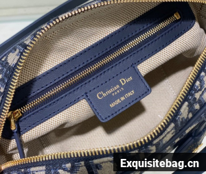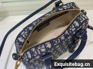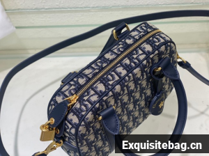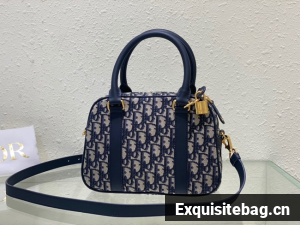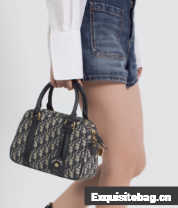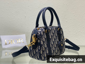 New for Fall 2024, the D-Vibe bowling bag has a streamlined and modern silhouette. Constructed in blue Dior Oblique jacquard adorned with tonal leather details, it stands out with a leather key holder engraved with the Christian Dior Paris signature and a gold-finish star. The attached key opens the zipper padlock to reveal a spacious compartment that can accommodate all the essentials, completed by a slip pocket and a zip pocket. Featuring leather top handles and an adjustable, removable strap, the practical medium bag can be carried by hand, worn over the shoulder or crossbody.