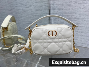 :: Small Dior Caro Top Handle Camera Bag Latte Macrocannage Calfskin M3352U