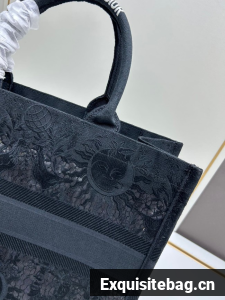 Introduced by Maria Grazia Chiuri, Creative Director of Christian Dior, the Dior Book Tote has become a staple of the Dior aesthetic. Designed to hold all the daily essentials, the style is fully embroidered with black Macramé offering a new take on the iconic House motif with the season"s signature Toile de Jouy Soleil, layering suns and crescent moons into a floral design representing the four seasons. Exemplifying House savoir-faire, the medium tote is adorned with the Christian Dior Paris signature on the front, and may be carried by hand or worn over the shoulder.