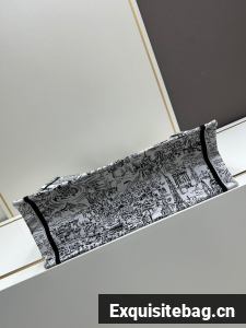:: Large Dior Book Tote White and Black Paris Allover Embroidery M1286ZE