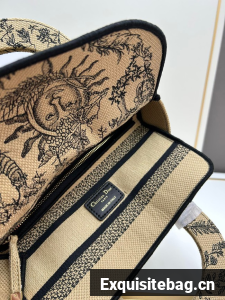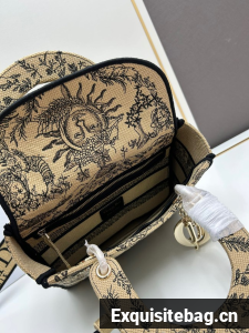 The Lady D-Lite bag captures the House"s vision of classic elegance and modernity. It is fully embroidered with the season"s signature Toile de Jouy Soleil motif in beige and black, offering a new take on the iconic House pattern with suns and crescent moons layered into a floral design representing the four seasons. The pale gold-finish metal D.I.O.R. charms embellish and illuminate the silhouette. Featuring a wide, removable embroidered shoulder strap, the medium Lady D-Lite bag can be carried by hand or worn crossbody.
