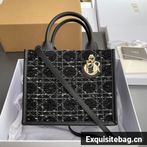 :: Small Dior Toujours Bag Black Cannage Tweed M1325OW