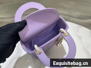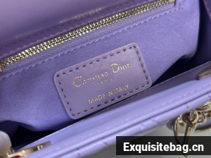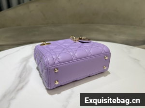 The Lady Dior bag epitomizes the House"s vision of elegance and beauty. Sleek and refined, the style is timeless. It is crafted in lilac lambskin with Cannage stitching, creating the instantly recognizable quilted texture. The pale gold-finish metal D.I.O.R. charms embellish and illuminate its silhouette. Featuring a removable chain shoulder strap, the miniature Lady Dior bag can be carried by hand or worn crossbody as an ideal evening wear companion.Removable chainInterior zip pocketThe bag may be paired with the House"s different embroidered strapsDust bag includedMade in ItalyDimensions: 17 x 15 x 7 cm / 6.5 x 6 x 3 inches (Length x Height x Width)The size is suitable for a phone, a card holder and lipstickChain length: 120 cm / 47 inchesChain drop length: 59 cm / 23 inchesWeight: approximately 495 g / 17.5 ouncesReplica DIOR Comes with serial numbers, authenticity card, dust bag and care booklet