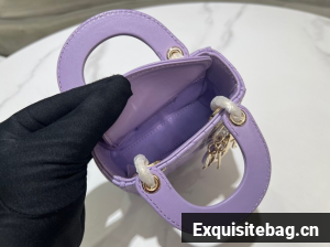 The Lady Dior bag embodies the House"s vision of elegance and beauty. Crafted in lambskin with signature Cannage topstitching, its iconic silhouette is embellished with a "D.I.O.R." charm. The micro style can accommodate all the daily essentials and features an adjustable and removable shoulder strap, allowing it to be carried by hand, worn over the shoulder or crossbody.