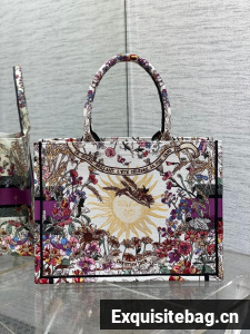 :: Medium Dior Book Ecru Multicolor Dior 4 Saisons Ete Soleil Embroidery M1296ZZ