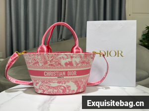 :: Dior HAT BASKET BAG Natural Multicolor Albero della Vita Embroider M1328CES rose