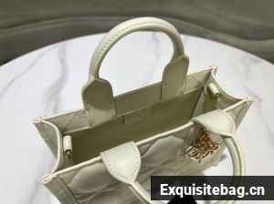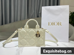 The Dior Book Tote is a House classic and original design by Maria Grazia Chiuri, Creative Director of Christian Dior. Constructed in latte calfskin, it is embellished with hallmark Macrocannage topstitching and accented by pale gold-finish metal D.I.O.R. charms adorning one of the top handles. Exemplifying House savoir-faire, the miniature style features an adjustable and removable strap that allows it to be carried by hand, worn over the shoulder or crossbody.