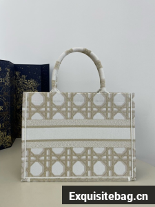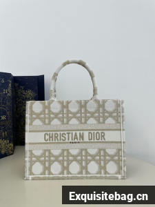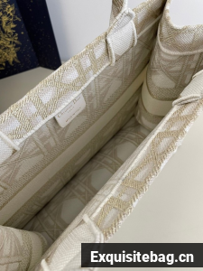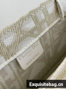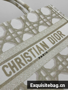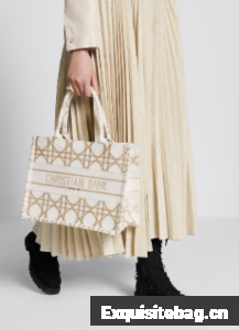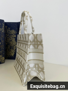 Introduced by Maria Grazia Chiuri, Creative Director of Christian Dior, the Dior Book Tote has become a staple of the Dior aesthetic. Designed to hold all the daily essentials, the style is fully embroidered with a gold-tone Macrocannage motif and is further adorned with the Christian Dior Paris signature on the front. The medium tote exemplifies the House"s signature savoir-faire and may be carried by hand or worn over the shoulder.