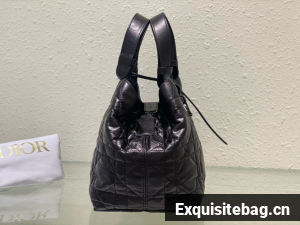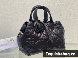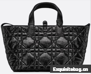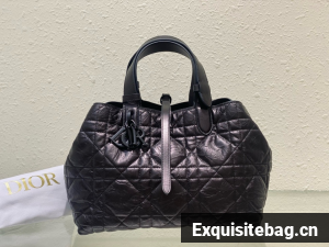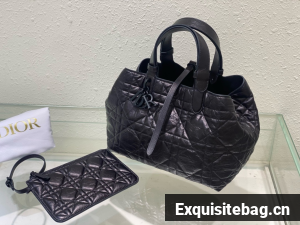 The Dior Toujours bag is distinguished by a casual and practical design. Crafted in black crinkled calfskin with Macrocannage topstitching, it showcases a spacious interior compartment with a matching pouch to organize the essentials. Its leather strap closure keeps items secure while the D of the CD Lock closure twists to adjust the sides and enhance the bag"s silhouette. The leather handles can be adjusted using the small notches in order to be able to carry the medium bag by hand or wear it over the shoulder.