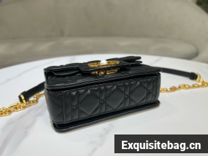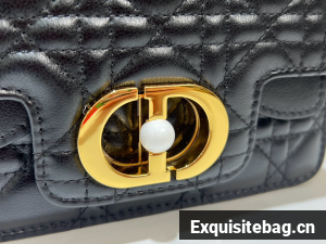 New for Summer 2024, the Dior Jolie Top Handle bag presents an elegant and functional design. It is crafted in black calfskin with Cannage stitching and features a double flap enhanced by a CD signature embellished with a white resin pearl, as well as three compartments and a zip pocket to accommodate all the essentials, day or evening. The removable top handle is completed by a detachable chain strap with a leather insert and CD signature links embellished with white resin pearls, allowing the miniature bag to be comfortably carried by hand, worn over the shoulder or crossbody.