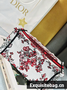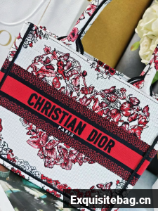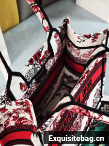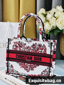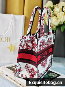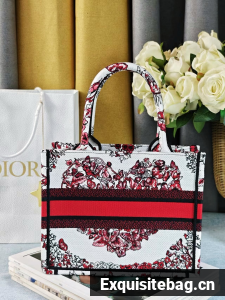 :: SMALL DIOR BOOK TOTEWhite and Red Le Coeur des Papillons Embroidery M1296ZRf