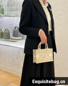 New for the Cruise 2024 collection designed by Maria Grazia Chiuri, the miniature tote elevates the iconic Dior Book Tote line. Fully embroidered with the House"s hallmark gold-tone Dior Oblique motif, it showcases the Christian Dior Paris signature. Embodying Dior"s savoir-faire, the Dior Book Tote is equipped with an adjustable and removable strap that allows it to be carried by hand, worn over the shoulder or crossbody.