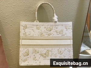 Introduced by Maria Grazia Chiuri, Creative Director of Christian Dior, the Dior Book Tote has become a staple of the Dior aesthetic. Designed to hold all the daily essentials, the style is fully embroidered with a white and gold-tone Dior Oblique motif. Adorned with the Christian Dior Paris signature on the front, the large tote exemplifies the House"s signature savoir-faire and may be carried by hand or worn over the shoulder.